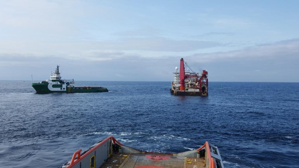 Le déplacement vers la destination finale a été réalisé par le Bourbon Crown, un navire AHTS DP2 d'une puissance de traction de 193 t. La vitesse de remorquage a été ajustée afin d'arriver sur place à 6:00 le lendemain matin, pour réaliser toutes les opérations d'ancrage-désancrage en journée : le positionnement de la barge en coordination avec la personne chargée du déplacement de celle-ci ; et le raccordement des amarres aux ancres pré-installées.