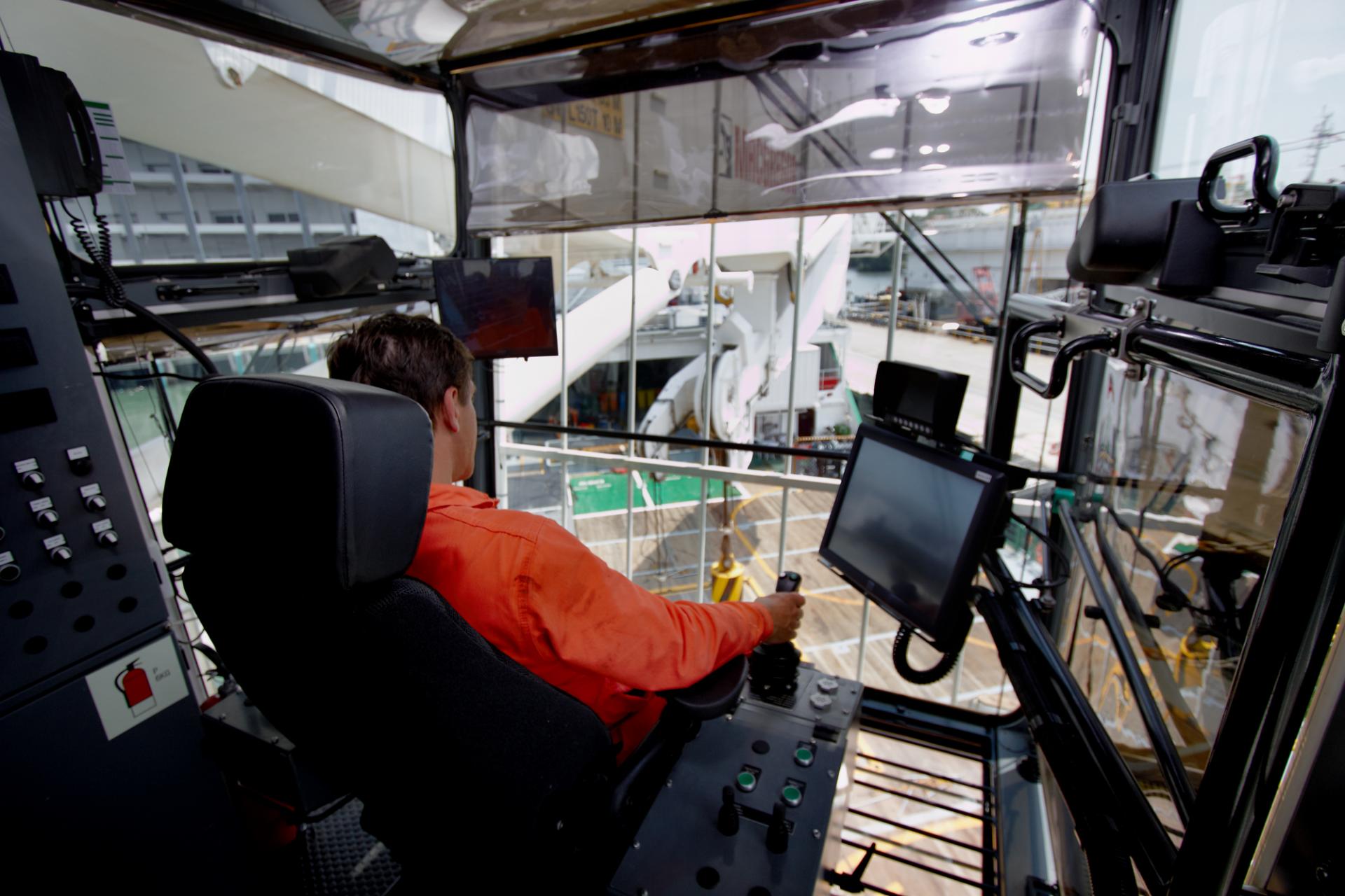 Le pont principal mesure 1 000 m2. Ce grand espace permet d'utiliser simultanément 2 grues AHC*** : une grue principale de 150 t et une grue auxiliaire de 40 t. Ces grues sont un véritable atout pour les MPSV, en particulier pour les opérations fréquentes d'IMR. Un pont de 250 m2 dédié aux ROV peut accueillir 2 ROV et leur équipement (atelier, poste de pilotage). Ces ROV peuvent travailler jusqu'à 3 000 mètres de profondeur et porter des charges allant de quelques kg à 3,5 t.